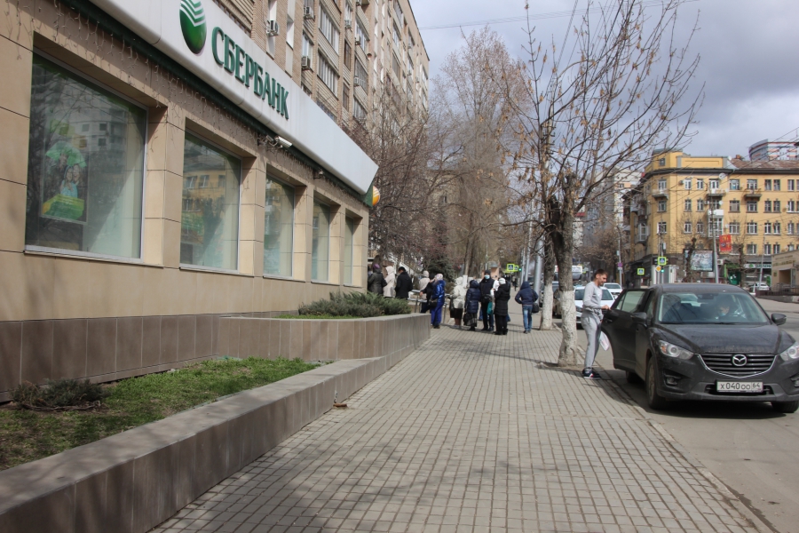 В Саратове во время самоизоляции горожане выстраиваются в очереди к отделениям Сбербанка, сотрудники которого начали из-за коронавирусной инфекции работать в новом режиме. Все ухищрения сотрудников банка пока не дают больших результатов.