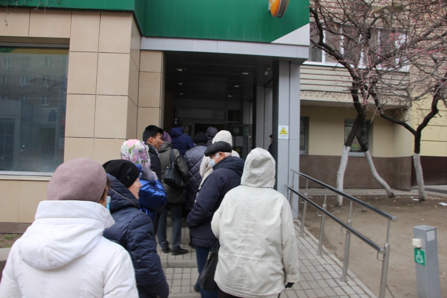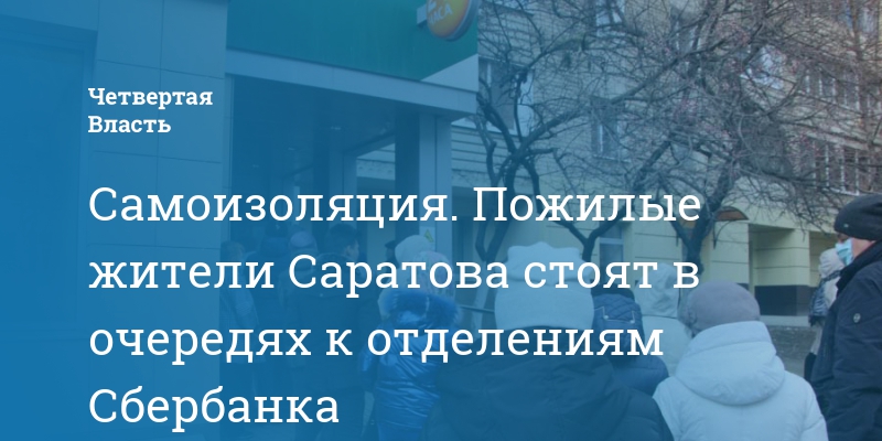 Самоизоляция. Пожилые жители Саратова стоят в очередях к отделениям Сбербанка