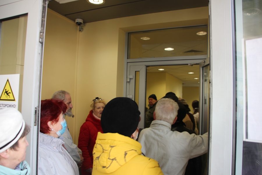 Скопления людей наблюдаются на улице Чапаева, где собралась серьезная очередь и на обслуживание физических лиц, и к банкоматам.
