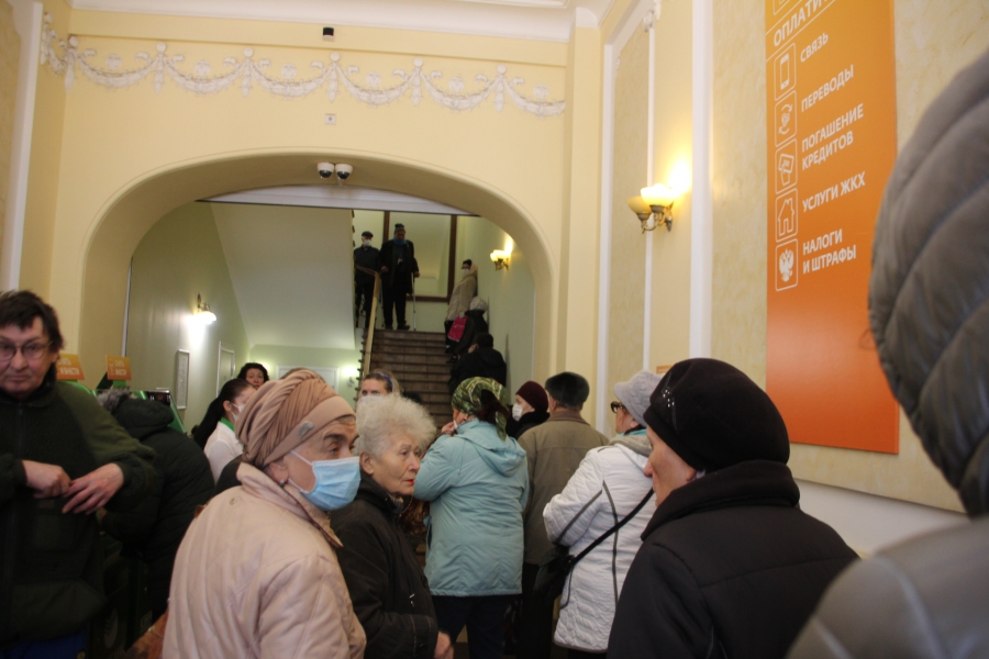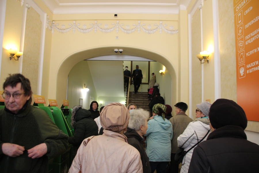 С привычного ритма город сбили мероприятия по сдерживанию распространения инфекции. Это же повлияло на работу местных банков, в частности Сбербанка. Многие отделения для обслуживания физлиц сегодня закрыты, но работают резервные: по определенным дням и в большинстве своем до 15.00. К ним-то как раз в результате выстроились длинные очереди саратовцев. Причем большинство из них – пенсионеры.