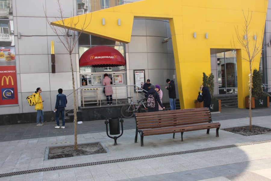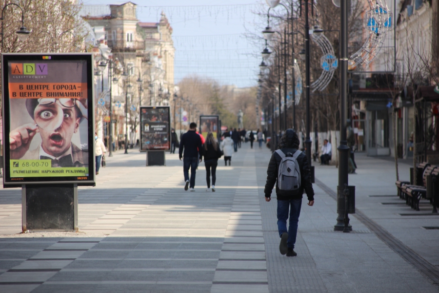 На главной улице Саратова – проспекте Кирова – ощутимо больше прохожих, но «заняться» там особо нечем – большинство магазинов закрыто. Поэтому горожане просто слоняются, сидят на лавочках, покупают еду из местных ресторанов самообслуживания и пьют кофе. На прилегающих улицах похожая ситуация. На фоне тотального отсутствия привычных городскому жителю развлечений в условиях самоизоляции они открыли новое – прогулки. И уже активно ему придаются. Некоторые саратовцы собираются на машинах по 3-4 человека и просто общаются, стоя на тротуаре.