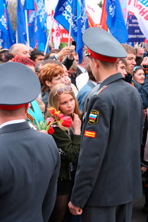 Разумеется, не обошлось без оживления экономической жизни: повсюду торговали цветами, шариками, мороженым и мобильным Интернетом.