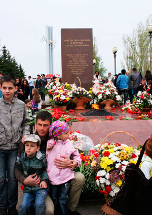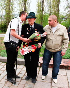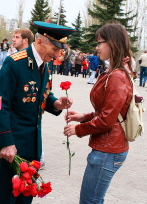 Можно было видеть, как люди подходят к ветеранам, дарят цветы и говорят «спасибо за победу». Многие фотографировались с детьми на фоне траурных венков у Вечного огня. И, разумеется, вся бронетехника в парке исполняла обязанности театральных лож, откуда за праздничными действами наблюдали компании зрителей младшего школьного возраста.