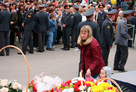 В этом году, как всегда, в Парке победы яблоку было негде упасть. У въезда стояли автобусы, привезшие ветеранов из отдаленных уголков области, автобусы от организаций и множество частных машин. Количество полицейских зашкаливало, а когда места народных гуляний уже были заполнены, на входе в парк даже встали несколько стражей порядка, которые придирчиво осматривали опоздавших с помощью металлоискателей.