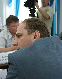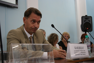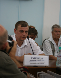 Первым перед комиссией предстал заместитель заведующего ФОК «Заводской» Юрий Афанасьев. По его словам, он 15 лет проработал инструктором в бассейне, а затем стал занимать административную должность. Свою менеджерскую программу в случае избрания главой администрации он видит просто: содействовать развитию спорта в городе, потому что «люди у нас мало занимаются спортом». Из других насущных городских проблем он назвал плохую уборку улиц и ЖКХ. «А каким словом, вы считаете, это можно объединить?» – мягко поинтересовались у кандидата члены комиссии. «Недостаток финансирования…» – грустно ответил кандидат. При часовом регламенте собеседования с каждым кандидатом первый претендент отнял у комиссии всего не более трех минут.