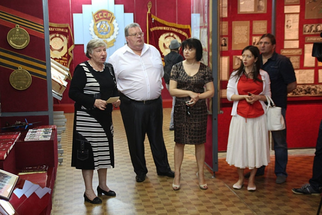 Поняв, что никакого действа более не произойдет, местные журналисты направились в другую точку маршрута - Саратовский подшипниковый завод. Здесь представителей СМИ встретила заведующая заводским музеем Галина Никитина. Она подробно рассказала об истории предприятия, действующего в годы Великой Отечественной войны. По ее словам, не смотря на тяжелое время войны, коллектив завода сумел общими усилиями собрать средства для покупки самолета, который в скором времени был направлен на фронт.