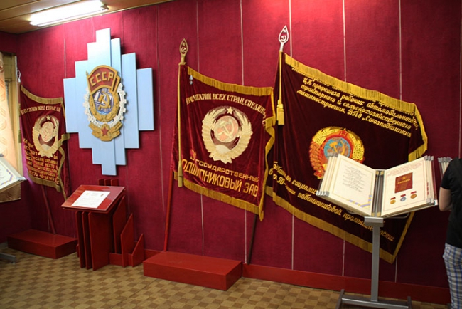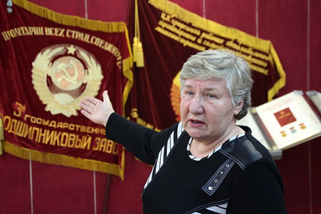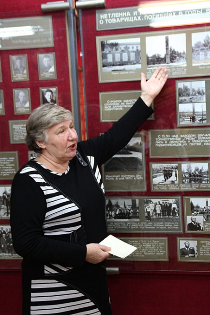 «11 февраля 1941 года мы выпустили первые подшипники, они были тракторные и массовые. А уже в мае мы получили приказ о начале производства подшипников для танков. Оборудования у нас не хватало, и его стали собирать по всей стране. Но 22 июня началась Великая Отечественная война, и к нам эвакуировался первый московский завод. На эшелоне прибыло 1500 человек и 1,5 тысячи единиц оборудования. Кузнечные станки устанавливались прямо на землю под большим шатром, так как кузница еще не была готова. Сразу же стали выпускать танковые подшипники. В январе 1942 года к нам прибыл второй эшелон с москвичами, которые сразу же начали налаживать выпуск авиационных подшипников. Параллельно этим двум направлениям мы стали выпускать и автомобильные подшипники», - рассказала руководитель музея, после чего продемонстрировала местный мемориал.