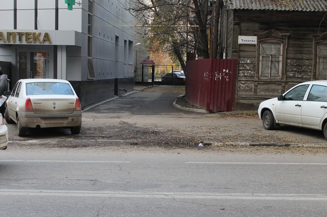 Проезд между домами №№63 и 65 по Кутякова также затруднен. Эти дома расположены между Чапаева и Рахова. В совокупности они занимают более половины квартала, и жильцов-автомобилистов там не меньше. Для того чтобы попасть в проезд между домами 63 и 65 со стороны Чапаева, придется сперва доехать до Рахова и развернуться.