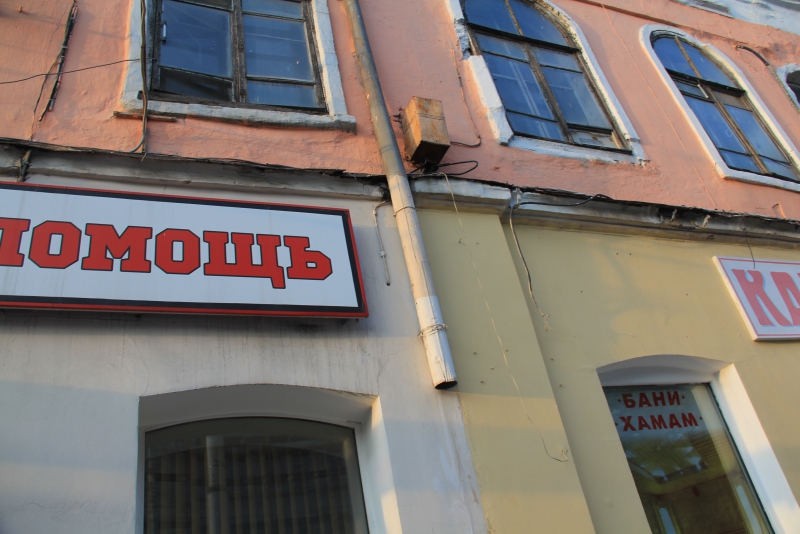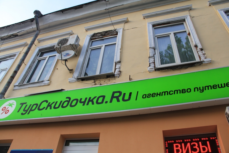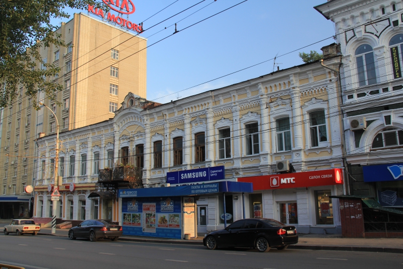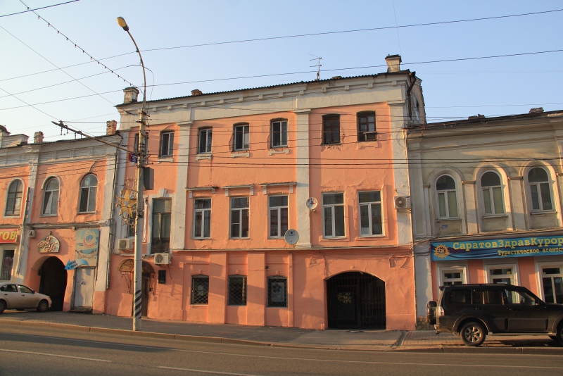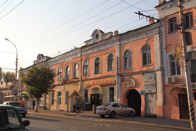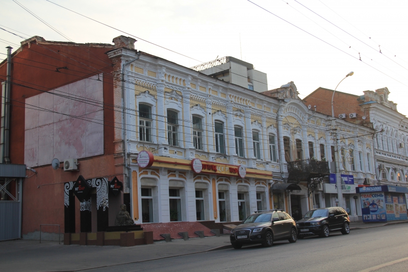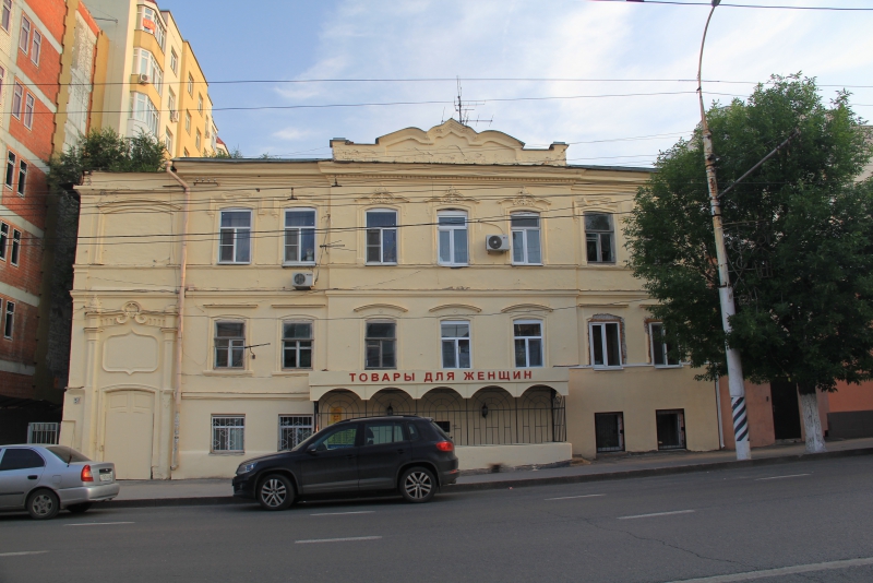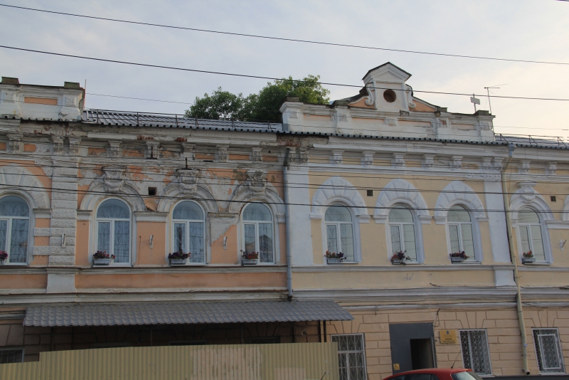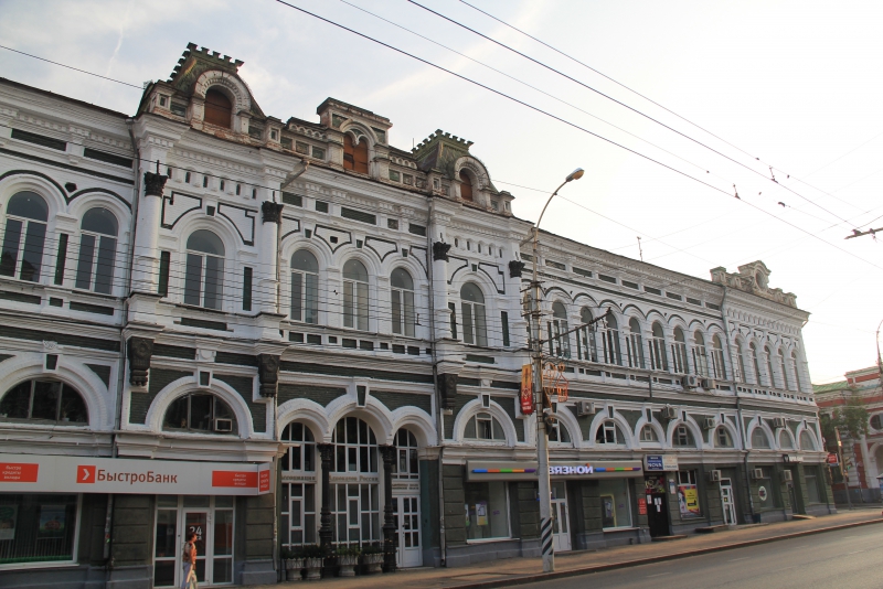 Пожалуй, самый выигрышный вид после покраски обрело бывшее здание торгового пассажа Лаптева (угол Московской и Радищева). Оно выделяется среди своих соседей на центральной улице города. Правда, и здесь не обошлось без изъяна. У тех, кто приводил здание в порядок, руки не дошли до крыши, и ее некрашеная верхняя часть выглядит диссонирующим элементом.