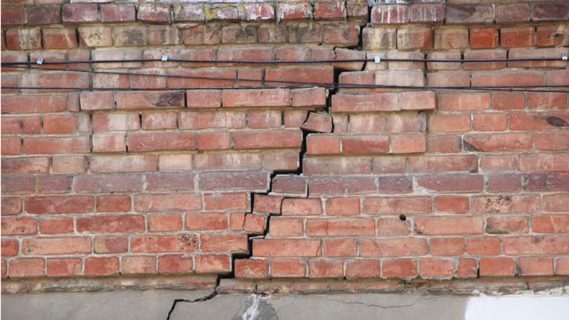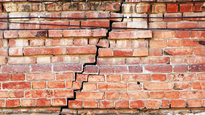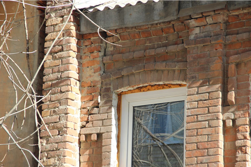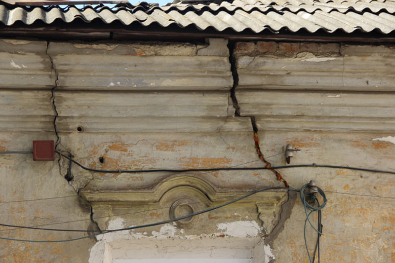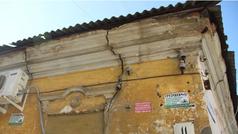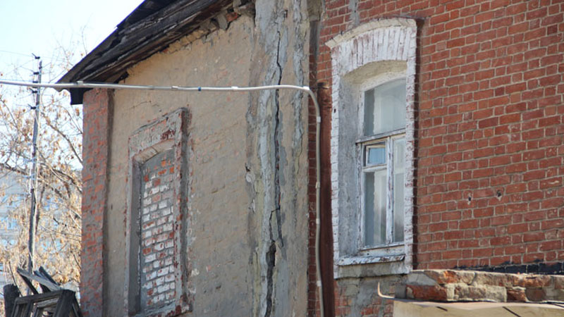 6. Стена дома №62 на противоположной стороне по этой же улице отклонилась назад, по ней поползла трещина. Стену со стороны двора также «украшает» разлом, при этом никаких восстановительных работ не замечено.