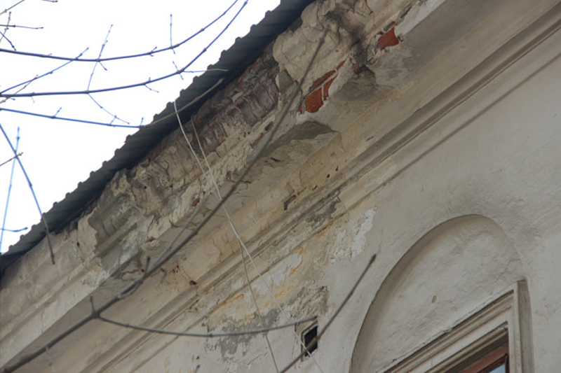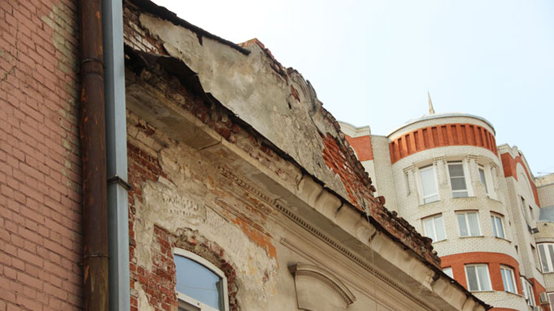 Корреспондент «4В» осмотрел несколько центральных улиц города, дальше которых иногородние туристы обычно не идут. Как оказалось, потенциально опасным здесь может быть практически каждое третье-четвертое старинное здание.