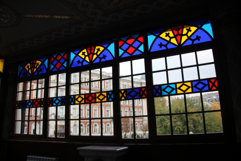 Самой интересной частью «пресс-тура» стал ее первый объект, Троицкий собор. В принципе, его посещением можно было бы ограничиться и отпустить несчастных журналистов и туроператоров домой. Протоиерей Михаил Беликов, автор книги «Старый собор. Старый город» вкратце рассказал историю церкви, самого древнего каменного здания на Волге от Казани до Астрахани. Кроме того, священник провел гостей в верхний храм и музей Троицкого собора, работающий в отдельном здании.