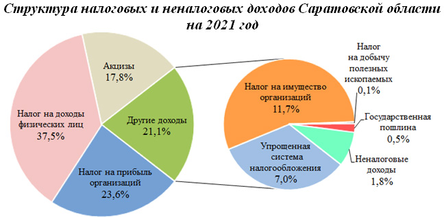 В 2021 году планируется собрать 69 млрд рублейналоговых и других обязательных платежей в областной бюджет, что выше на 3,4% оценочного показателя текущего года. Главными бюджетообразующими налогами для области являются налог на доходы физических лиц, налог на прибыль организаций, акцизыи налог на имущество организаций. В сумме эти четыре налога составляют 90,6% общей запланированной на 2021 год величины налоговых и неналоговых доходов областного бюджета.