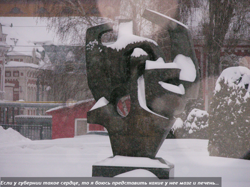 Произведения же абстрактного искусства в принципе не могут быть памятниками – это аксиома. Памятник от слова «память». А о чем можно вспомнить, глядя на «Сердце губернии», о белой горячке? Градостроителям надо, наконец, понять, что абстракции на улице - это не более, чем «дизайнерские находки» для украшения газонов и ландшафтов и ими не стоит злоупотреблять.