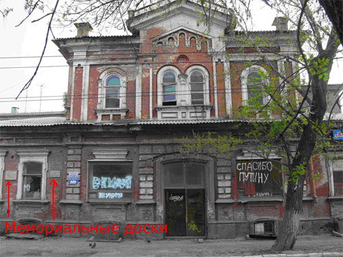 Памятник историко-культурного наследия - здание штаба легендарной 53-й стрелковой дивизии. В руины его превратили не гитлеровские войска, а Министерство Обороны РФ, которому оно и принадлежит. Хоть бы мемориальные доски сняли и не позорились.