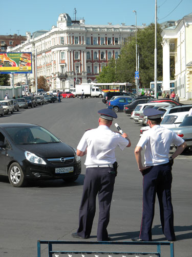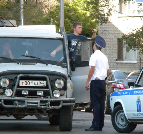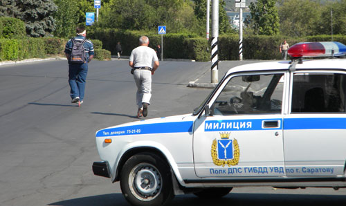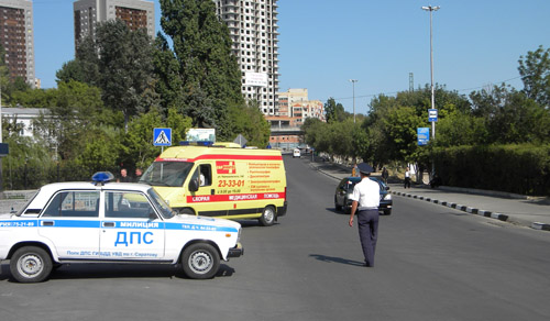 Как и в первом случае, серьезно пострадало движение в районе Набережной Космонавтов Саратова. В день приезда Медведева милиционеры оцепили несколько кварталов вблизи гостиницы «Словакия», где расположилась многочисленная свита первого лица страны. Ниже улицы Лермонтова не пускали никого. На глазах корреспондента «Четвертой власти» даже не пустили частную карету «скорой помощи», посчитав, что ей лучше поехать по пробкам. Что уж говорить о рядовых автовладельцах. Горожане, например, не могли подъехать к гипермаркету «Эльдорадо», чтобы купить технику. Кто ж потащит ее на себе? К продовольственным магазинам не пускали машины с товаром. Не могли горожане подъехать и на работу. «Идите пешком», - холодно реагировали гаишники, не по своей воле устроившие этот хаос (ссылаются на распоряжение ФСО). В результате Лермонтова и перпендикулярные улицы были забиты припаркованным транспортом, отвоевавшим у пешеходов тротуары. Мимо постов могли проехать только авто с правительственными номерами «О…ВВ», еще со вторника оккупировавшие гостиничную стоянку.