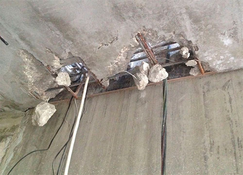 На фото №5 заметно, что плиты перекрытия как бы шершавые - это осыпалась их растворная часть. Такого произойти было не должно, значит, бетон плохого качества и его создателям надо оторвать руки - так же как и тем ответственным лицам, кто контролировал их работу.