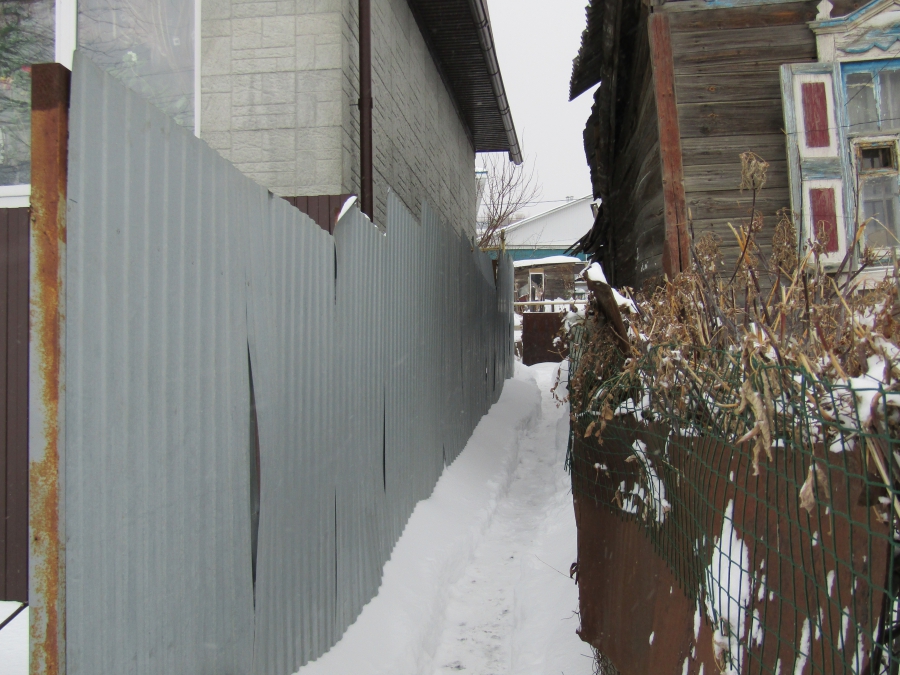 Житель Саратова Владимир Маслов пожаловался в редакцию «Четвертой Власти», что его жизни буквально ежедневно угрожает опасность. К своему дому в поселке Затон ему приходится ходить через узкий проход между домами. Его соседка возвела несколько лет назад жилое здание с высокой крышей, с которой зимой на головы людям падают глыбы льда и снега. На месте событий побывал корреспондент «4В».