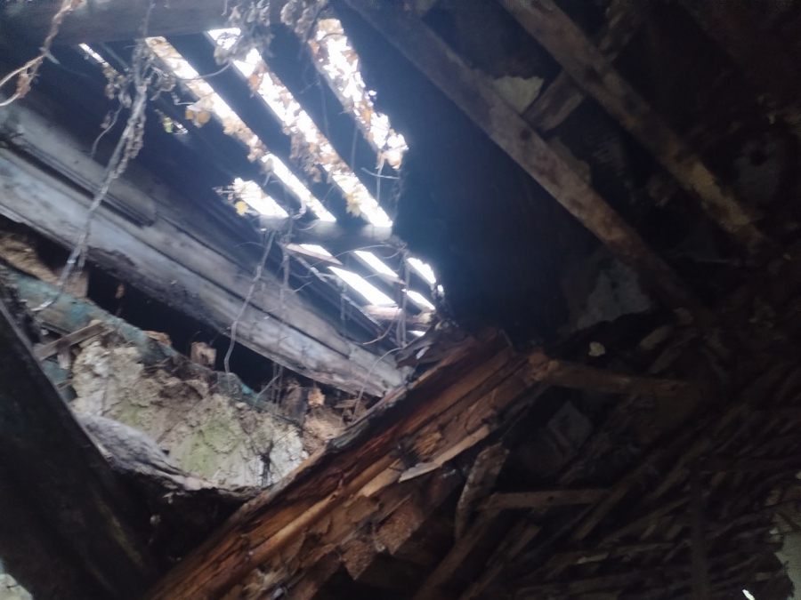 Кстати, сам дом мы посетили. Вернее, его развалины. От него, по сути, остались одни стены, пола нет, все завалено мусором, от крыши остались несколько досок. Во дворе живет стая диких собак. Судя по панорамам на картах в интернете, в 2021 году жилье еще выглядело прилично.