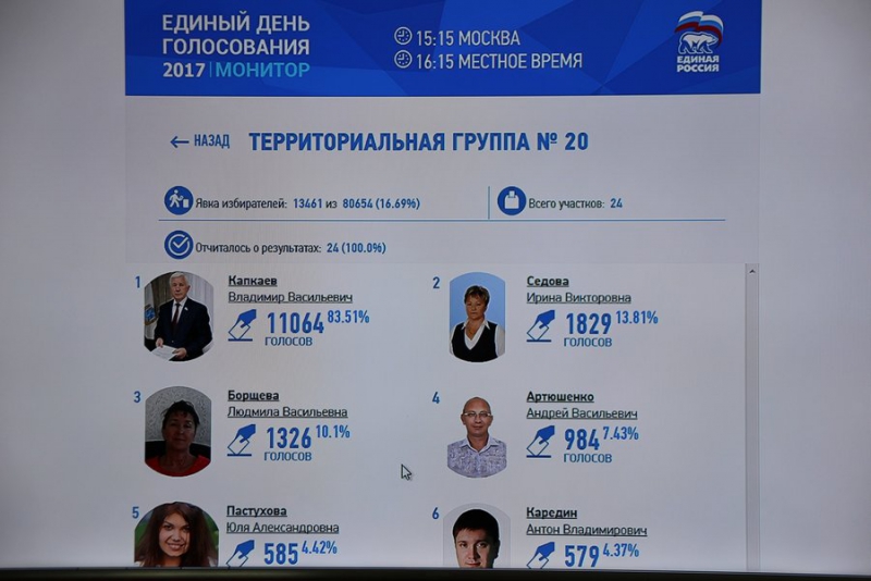 Из тех, кто баллотировался по территориальным группам (по партийному списку), наибольший процент голосов собрал нынешний спикер облдумы Владимир Капкаев – 83,5% голосов, на втором месте руководитель областного профсоюза Михаил Ткаченко – 82,4%, на третьем руководитель исполкома реготделения «ЕР» и проректор СГЮА Валентина Гречушкина – 74,9%.