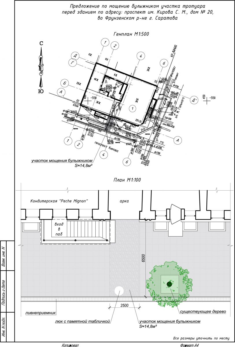 Блогер добавил, что тему о создании «исторического уголка» он озвучивал главе Саратова Михаилу Исаеву и его профильному заму Максиму Сиденко. После этого Сиденко в конце августа встречался с бизнесменом и краеведом, интересовался, как появление булыжного участка увязывается с интересами маломобильных групп населения. Однако дальше этого дело не пошло.