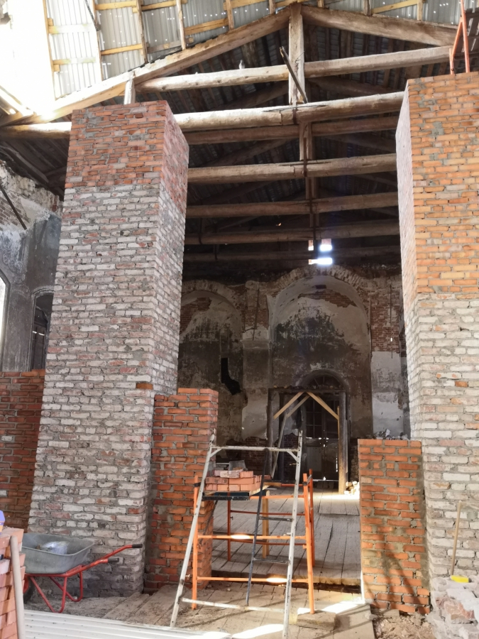 Главная же задача мирян – начать возрождение храма, провести укрепительные работы. По словам Кискина, сейчас стоит цель найти около 250 тысяч рублей, чтобы провести необходимые работы по текущему благоустройству: продолжить восстановление крыши, вставить окна. Фирму, которая поставит окна, он уже нашел.