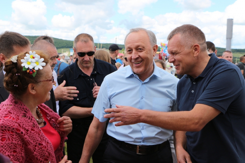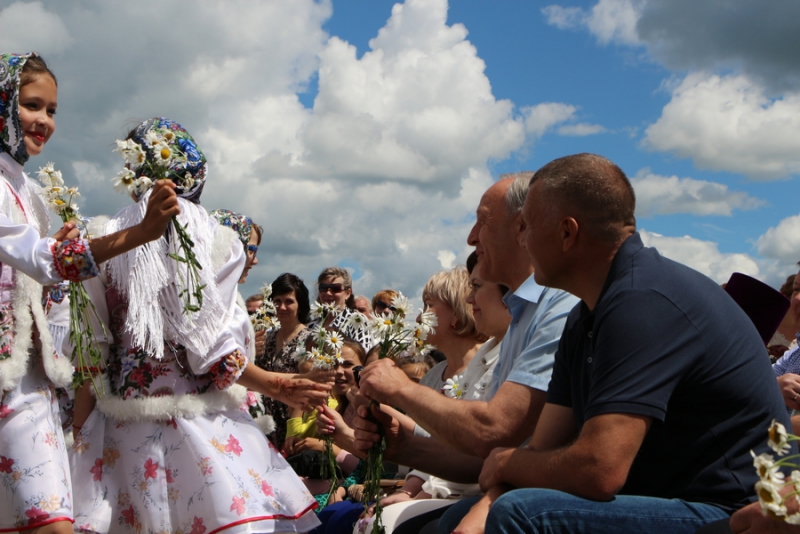 После осмотра села и его особенностей посетители возвращались к главному месту праздника. В 13.00 там началось торжественное открытие фестиваля. На него прибыл врио губернатора Валерий Радаев в сопровождении чиновников регионального правительства. Руководителя области встретили как почетного гостя по старой русской традиции хлебом и солью, сопровождая действо фольклорными песнями. Главный гость прошелся по палаткам, осмотрел изделия, пообщался с мастерами.