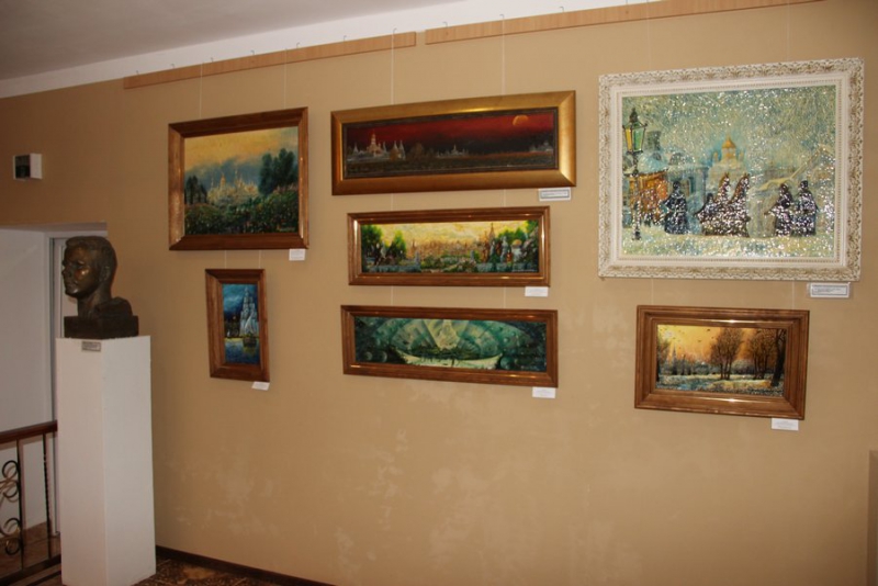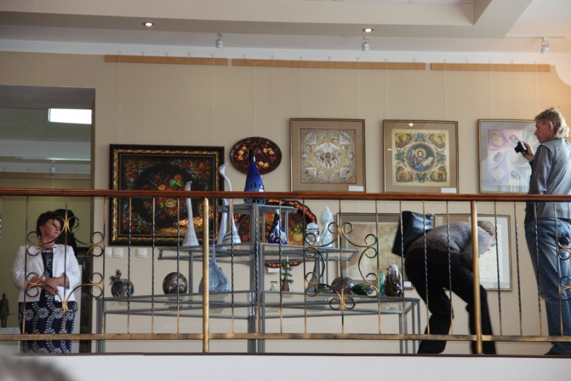 Что же касается непосредственной музейной работы, сегодня, по словам директора, в здании работает основная экспозиция и организуются временные выставки. Новые же экспонаты, переданные к 5-летию музея, размещены в главном зале на первом этаже за счет уплотнения основной экспозиции - часть ее сняли и повесили вместо нее новые картины.