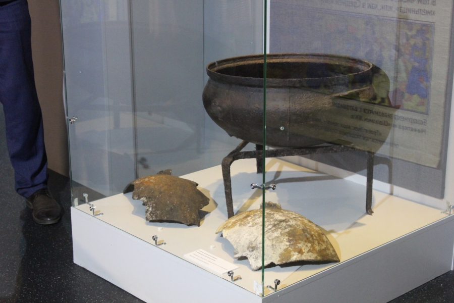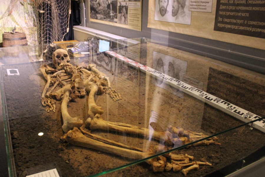На выставке, помимо найденных кладов, был также представлен скелет человека. Его обнаружили в селе Расловка. Погребение датируется XIII-XIV веками. Это мужчина чуть старше 55 лет, точный возраст определить сложно.