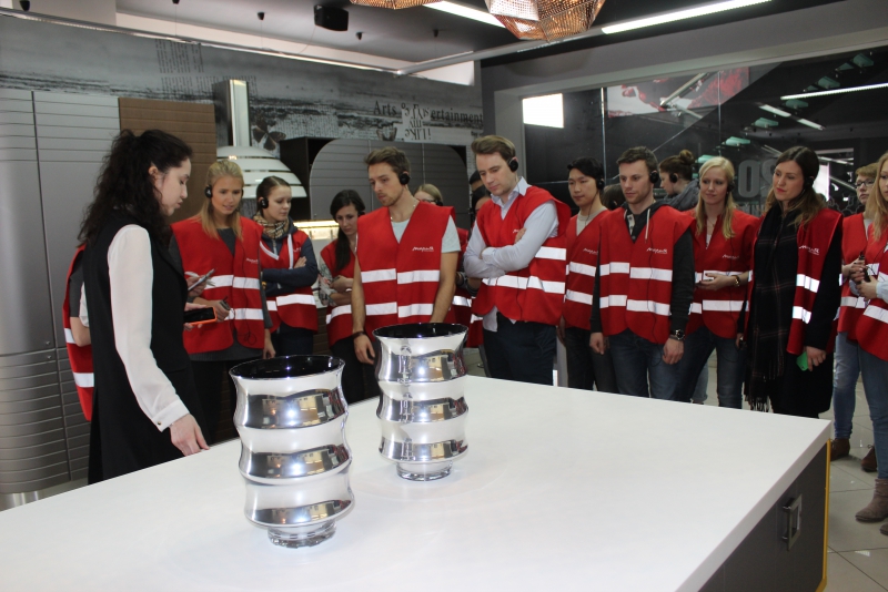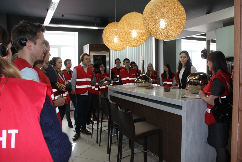 В начале экскурсии гости увидели современный офис компании, оснащенный по последнему слову техники, и поднялись на крышу здания, откуда открывается великолепный вид на Волгу. Затем студенты отправились в шоу-рум, где можно было посмотреть готовые образцы кухонь «Мария». Самый большой восторг вызвала модель с подъемным островом – ребята все вместе, затаив дыхание, следили за тем, как поднимается и опускается столешница.