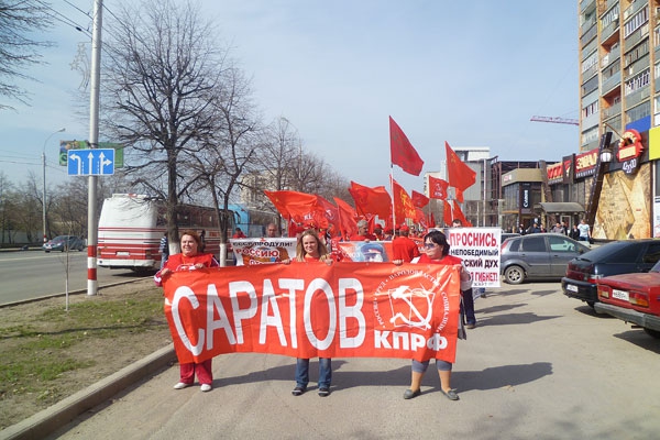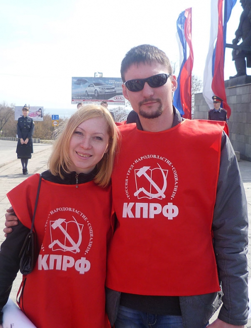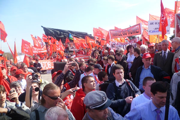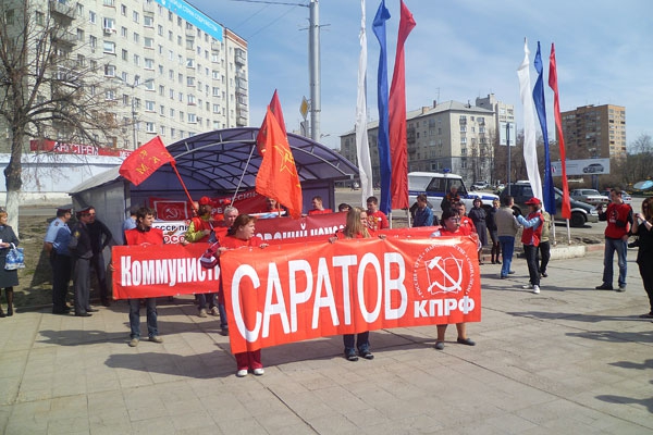Начальник нашего автобуса, всего из Саратовской области их выехало три, Тимур Коньков суетится с транспарантами, флагами и организацией колонны. От него узнаю, что акция будет проходить на площади 30-летия Победы, метрах в ста от нашего автобуса. Зачем-то выпрашиваю свисток. Пока есть свободное время, прогуливаюсь. По пути встречается пожилая пара. Болтаем. «Последние выжившие коммунисты?» – нелогично ухмыляется мужчина, кивая головой на стайку комсомольцев. «Им бы молодежи побольше», – грустно отмечает его жена, после чего супруги удаляются. Смущенный таким поворотом диалога, по пути назад раздумываю о штампованном восприятии российского электората. Около автобуса меня с бутербродом из пирожка и копченого мяса встречает Илья, крупный добродушный парень, полночи докапывавший однопартийца Маслова фразами «Владимир, я тоже за свободный доступ к Волге!». Для тех, кто не в курсе, тот самый Маслов активно выступал за ликвидацию платных пляжей в саратовском Затоне. Потом власти посносили-таки заборы, и ему пришлось переключиться на борьбу с режимом.