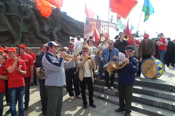 После выступлений, пока митинганты перестраиваются в колонну, чтобы пройти на площадь Ленина возложить цветы к памятнику вождю мировой революции, замечаю девочку, уминающую пирожное. Подхожу и дарю ей свисток. «А мне?» – спрашивает ее мама. «Свистки, согласно партийной разнарядке, выдаются только несовершеннолетним», – смущено вру я и бегу фотографировать колонну, которую возглавили давешние спикеры.
