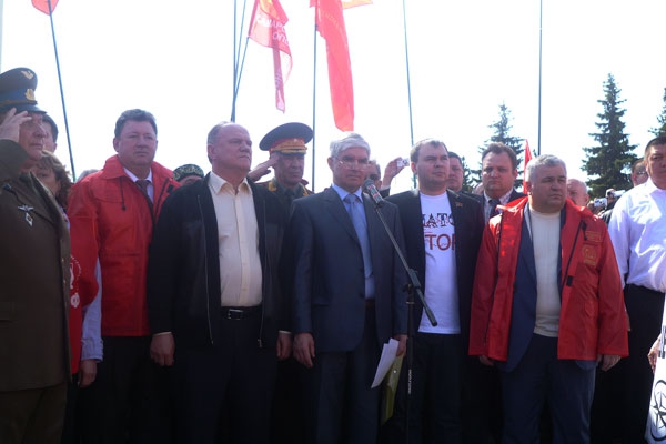 К моменту приезда Геннадия Зюганова пятитысячной толпе уже было понятно, что стоять на солнцепеке в +30 придется долго. Однак, его речь все восприняли с энтузиазмом. «Еще недавно в дурном сне не могло присниться, что на берегу Волги в Ульяновске могут открыть военную натовскую базу. Меня поразило в этой истории то, что местный губернатор почти полтора года вел закрытые переговоры с натовцами, утаил это даже от своих законодателей. Область от этого якобы коммерческого проекта ничего не выиграет. Страна теряет суверенитет, впервые за тысячу лет создается прецедент для создания у нас иностранной военной базы. И впереди ситуация будет только осложняться. Я не удивлюсь, если во второй половине лета американская и израильская военщина развяжут войну в Иране, а эта база будет использоваться для того, чтобы на юг сплавлять военные грузы и военный контингент. Я не удивлюсь, если завтра наши молодые ребята будут обслуживать их военные интересы под видом миротворцев. А на самом деле будут сражаться за совершенно чуждые нам интересы», – заявил партийный лидер. После его выступления акапельно выступил пенсионер с песней «Дубинушка». Музыкальное сопровождение, кстати, было только после Зюганова, остальные спикеры просто говорили один за другим. Например, Ольга Алимова вообще выступила «не как политик, а как женщина»: «Я не могу равнодушно смотреть на то, что может власть сотворить с нашими мальчишками. Как можно назвать главнокомандующего, который рушит нашу армию?». «Предатель!» – заорал кто-то в ответ из толпы. А Геннадий Андреевич потом после выступления по-отечески поцеловал Алимову в макушку.