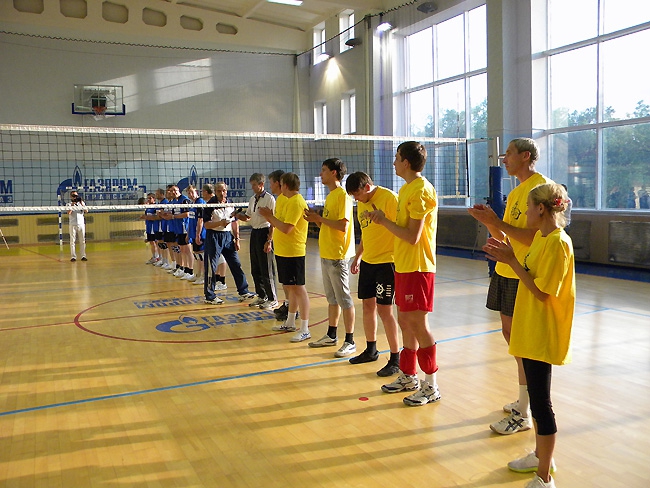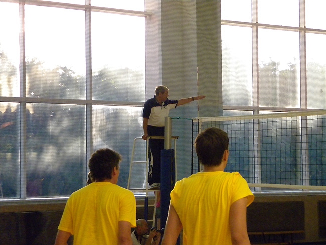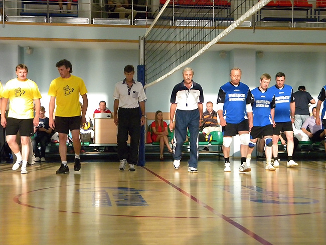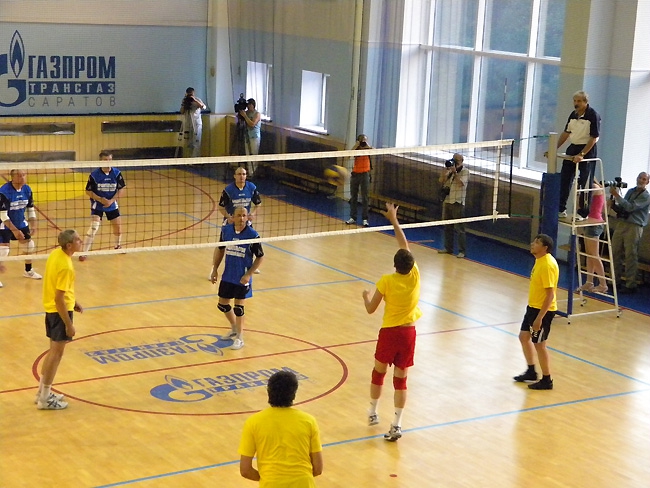 Самым легким для сборной чиновников оказался первый сет. В нем они уверенно одержали победу со счетом 25:16. Надо сказать, что лучшим игроком среди обеих команд в этом тайме, как и во всех последующих, был капитан правительственной команды, губернатор Саратовской области Валерий Радаев. Именно он чаще всего спасал команду от атак противника, делал самые мощные подачи и создавал голевые моменты.