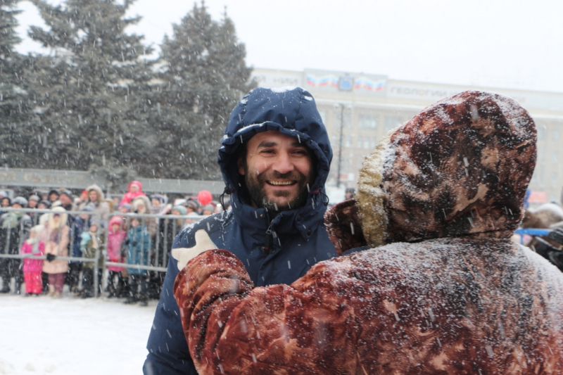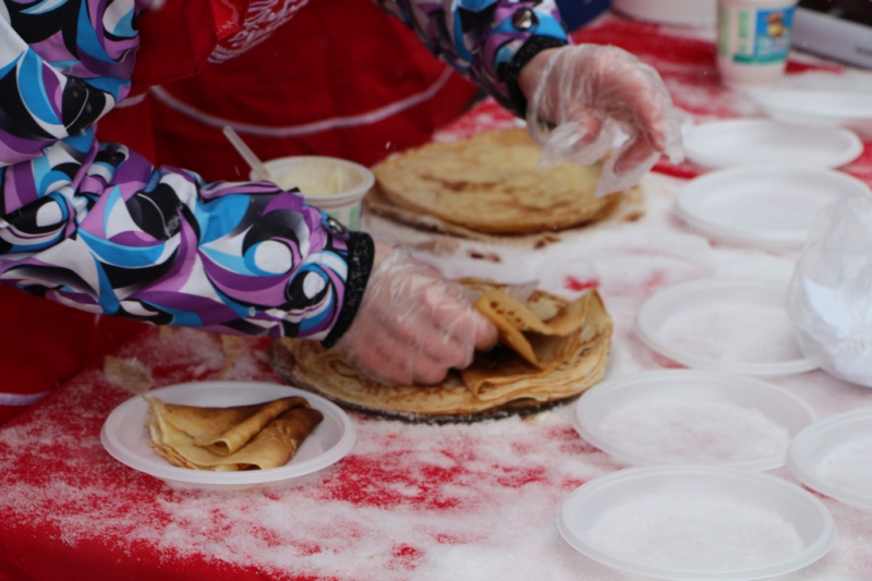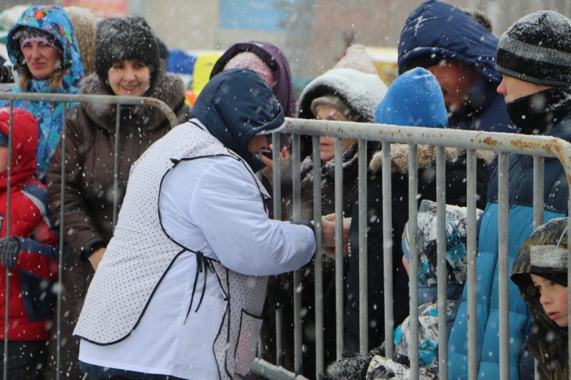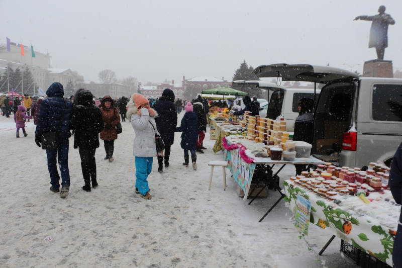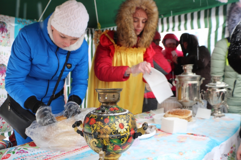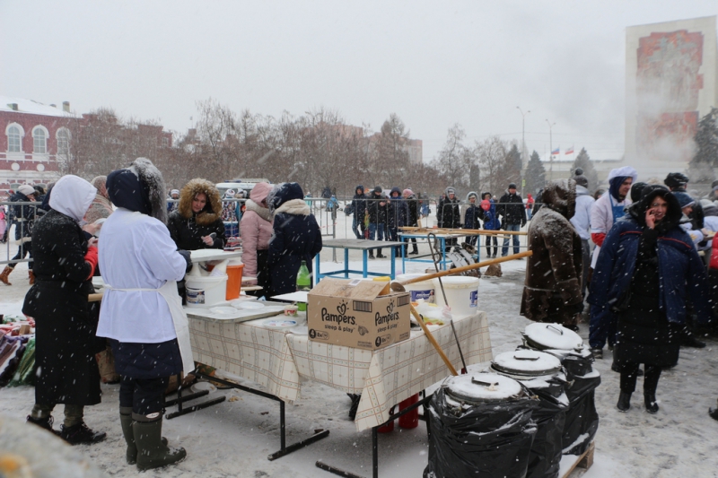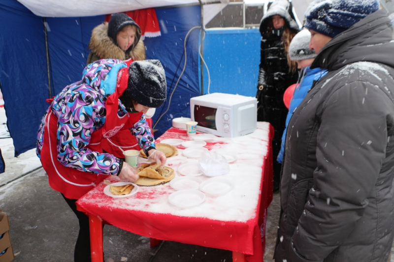 Кроме того, на площади выставили палатки, где продавали горячий чай, блины и шашлык, некоторые угощали главным символом Масленицы бесплатно.