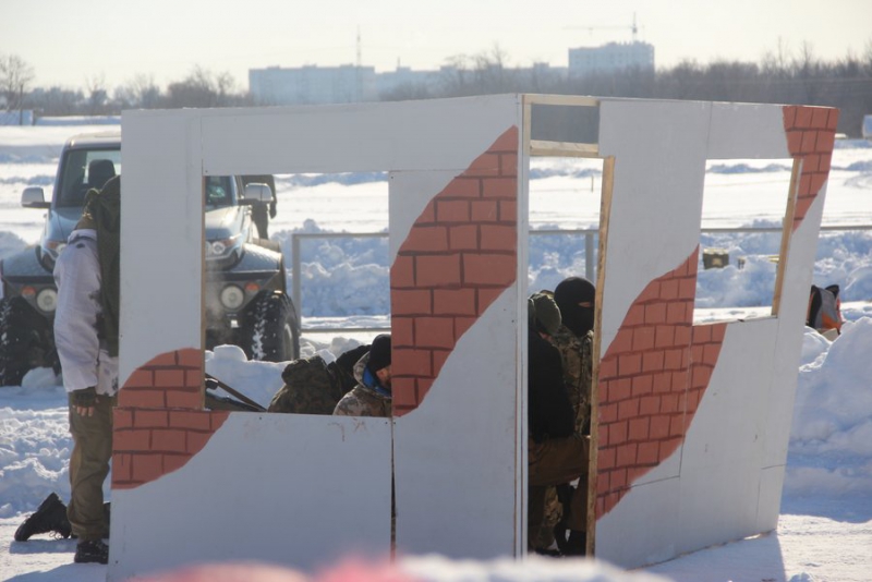 После этого гостям показали сценку с обезвреживанием условных террористов. В стенах полуразрушенного здания засели «боевики», которые заминировали подходы и подъезды техники. Но это не остановило российских солдат - обезвредив взрывные устройства, они начали атаку, их поддержали БТРы и внедорожники. При этом бойцам пришлось отстреливаться от «беспилотника», в роли которого, по всей видимости, выступили белые шарики, закрепленные на ограждениях перед трибунами. В итоге «террористов» обезвредили.