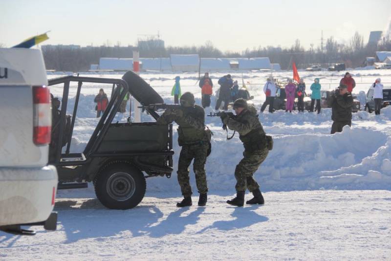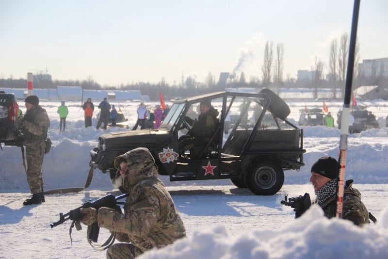 На этом основная часть завершилась, и все желающие могли пройти на полигон, в который превратилась территория ипподрома. Там и здесь стояла военная техника, автомобили службы спасения и полиции. Здесь же располагались палатки реконструкторов, одетых в исторические костюмы и стенды с оружием. Люди охотно фотографировались с техникой и экспонатами, а некоторые примеряли на военную униформу и брали в руки автоматы.