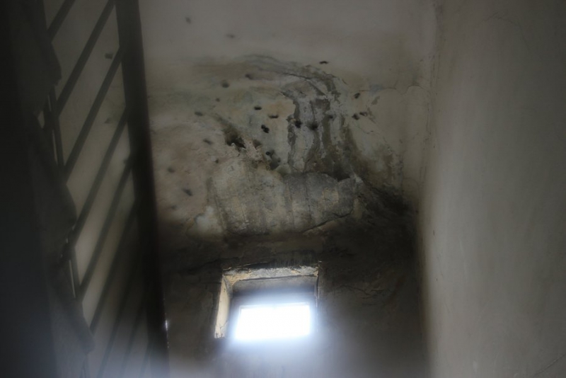 В третьем подъезде все так же было затянуто паром от бегущей в подвале воды и ощущалась сильная влажность. При этом ни в одном подъезде на местах, где должны висеть батареи, не было ничего, кроме не прокрашенных в этих местах стен.