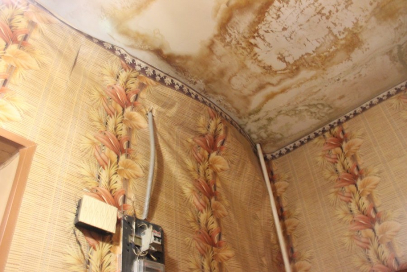 Такая же плачевная ситуация и в соседней квартире. Ее владелец продемонстрировал плесень на потолке и оставшиеся рельсы креплений от некогда бывшего здесь натяжного потолка.