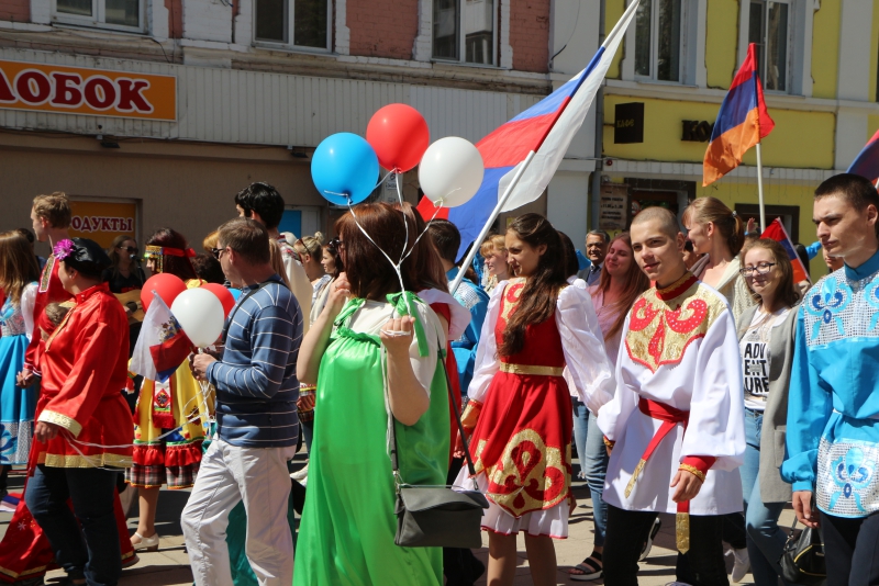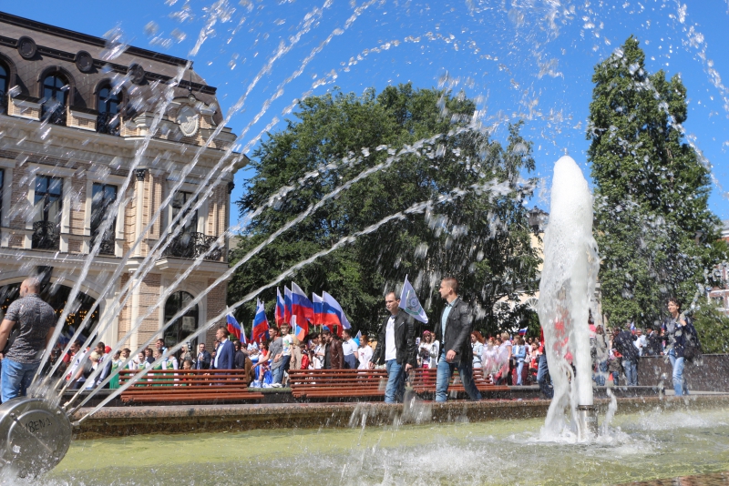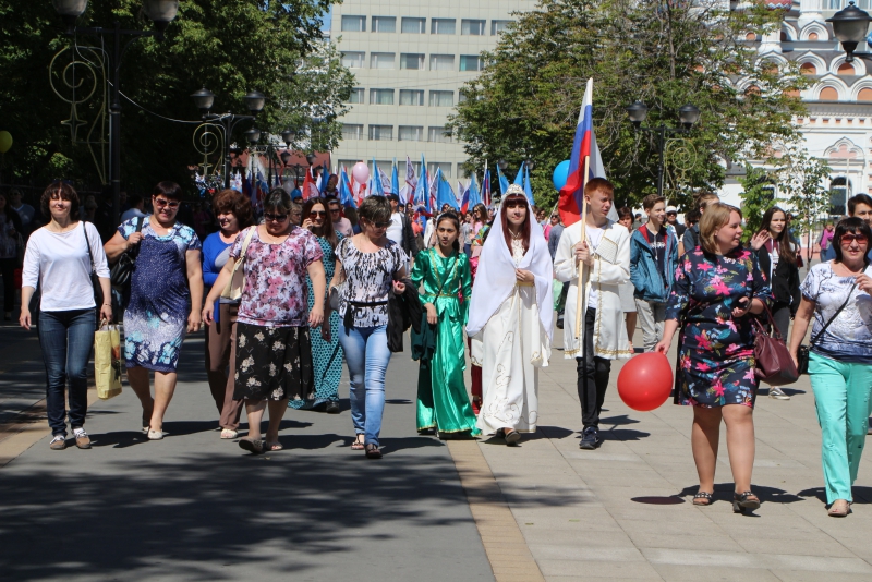 Сегодня в центре Саратова прошел парад дружбы народов в честь празднования Дня России. Шествие стартовало сразу после окончания митинга-концерта на площади Чернышевского. По заверениям организаторов, оно собрало около 1000 человек.