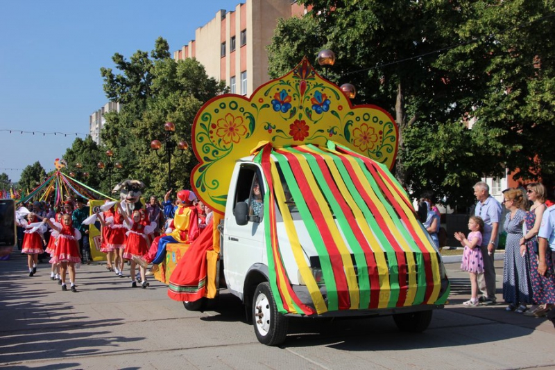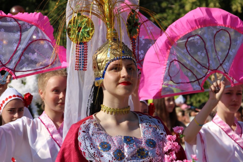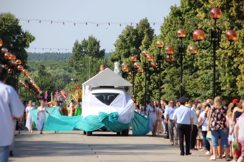 Перед торжественным открытием для горожан устроили праздник на главной пешеходной зоне от улицы Советской до улицы Володарского. На несколько кварталов растянулось театрализованное шествие, которое проходит под девизом «Весь мир театр». По улицам ехали автомобили со сказочными героями. Восторг у детей у детей вызвали мыльные пузыри, прицессы, и клоуны. Гимнасты исполнили несколько номеров на главной площади. По окончанию костюмированного шествия люди разделились на два потока. Одни пошли участвовать в конкурсе по лучшей костюмированной семьи, а выпускники прошли на площадь, где для них организован концерт.