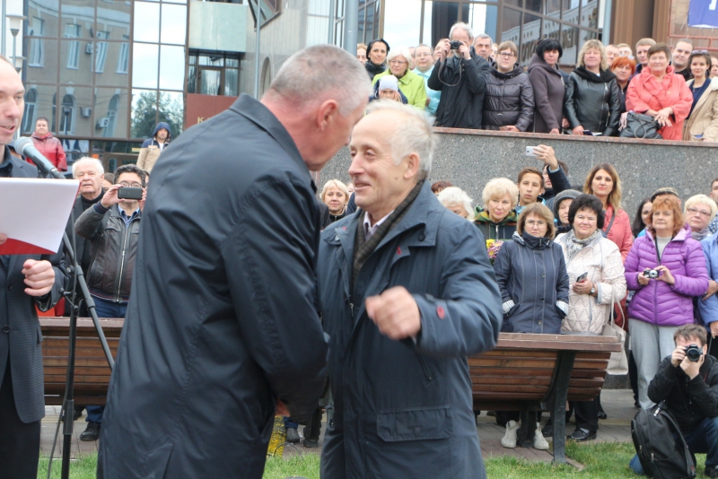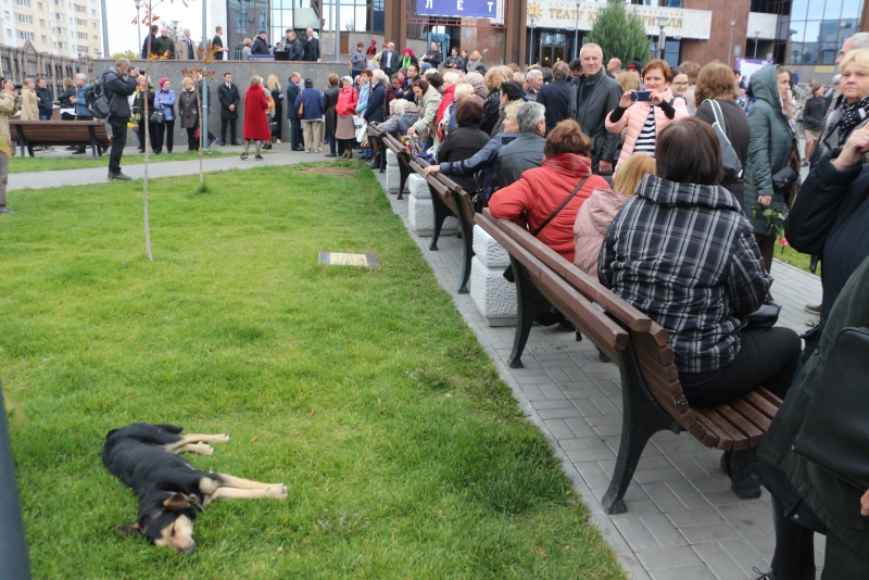 Завершилась церемония возложением цветов и массовой фотосессией горожан с памятником.