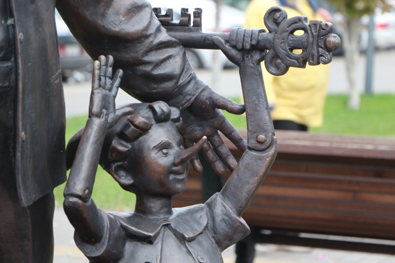 Монумент появился у здания нового ТЮЗа на улице Киселева (угол Чапаева) в сквере у фонтана «Театральный». Автором композиции стал скульптор Николай Бунин. Юрия Киселева он изобразил стоящим возле колонны, на которой написано «ТЮЗ», и приоткрывающим драпировку. Рядом на кубике сидит Буратино. По задумке Бунина, Киселев и герой известной сказки будут приглашать юных зрителей на спектакли.