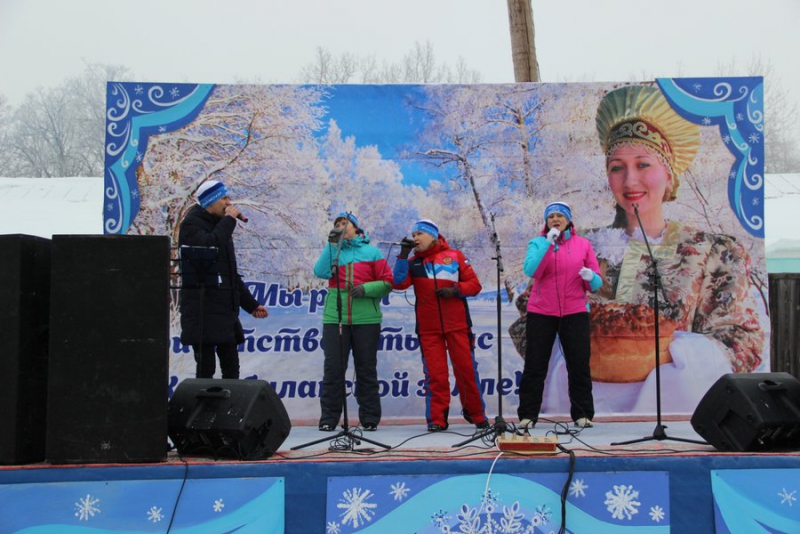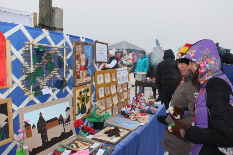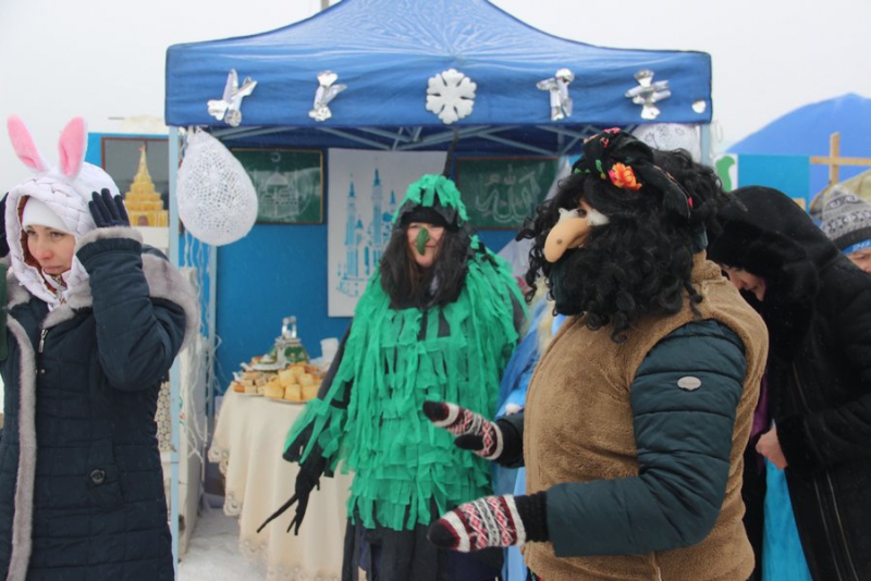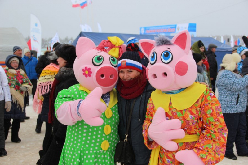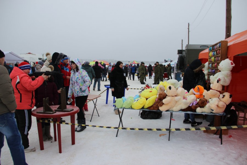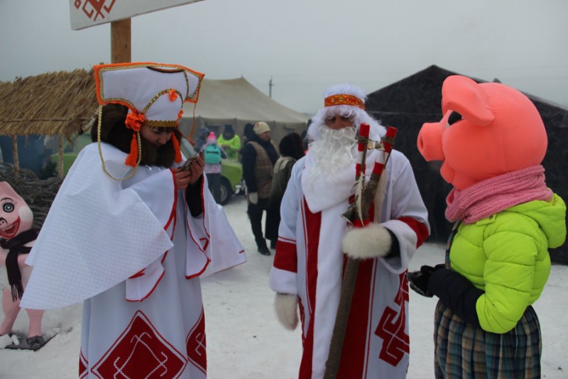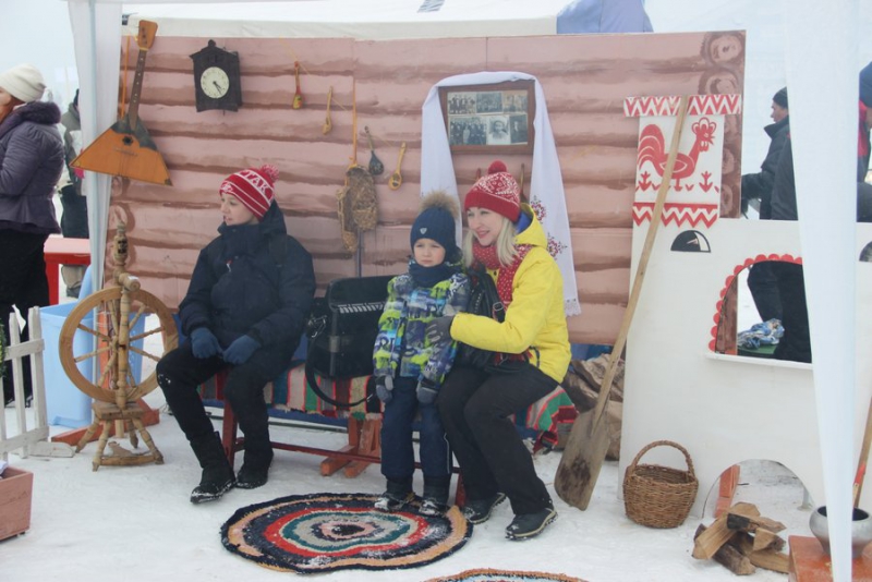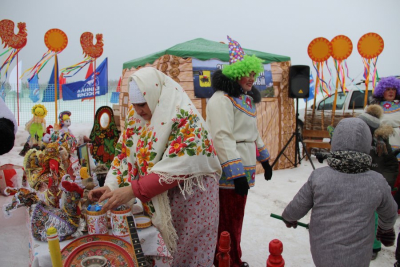 Неподалеку детвора каталась с огромной горки, ребята состязались в перетягивании каната. Много желающих собралось, чтобы покататься на тройках лошадей и собаках хаски. Там и здесь можно было увидеть сказочных персонажей - «медведей», скоморохов, «петухов» и др. В воздухе парил парапланерист.