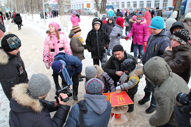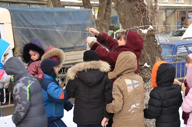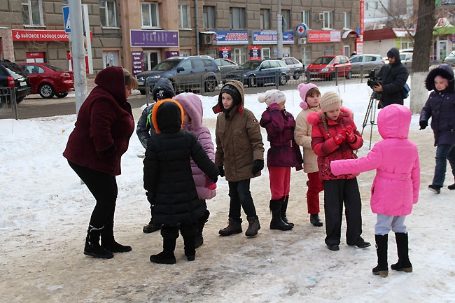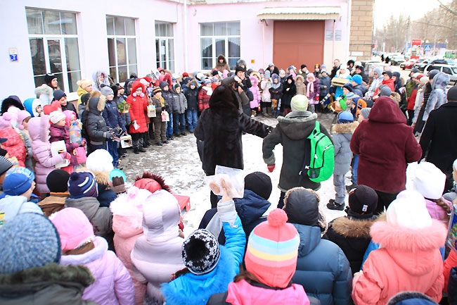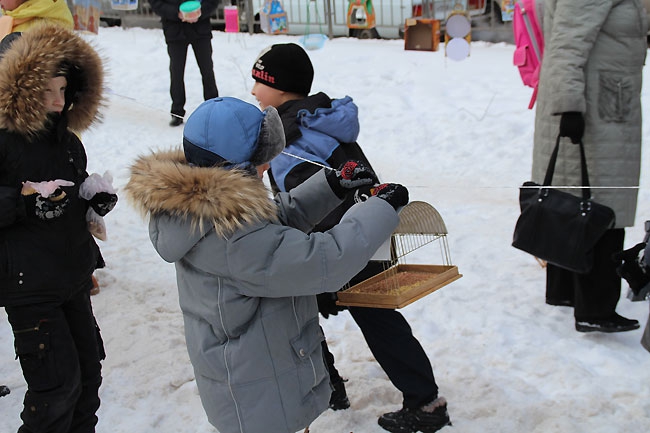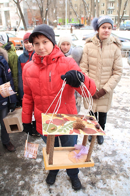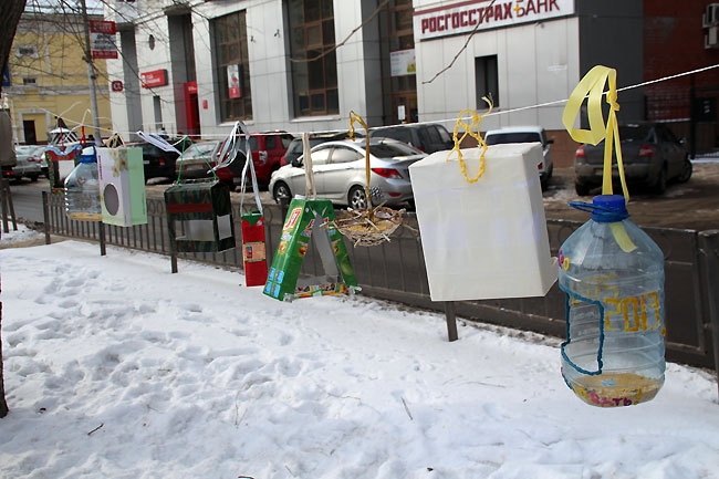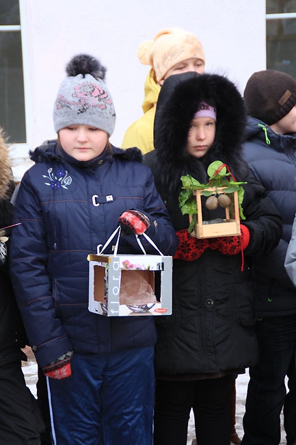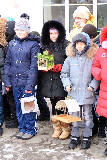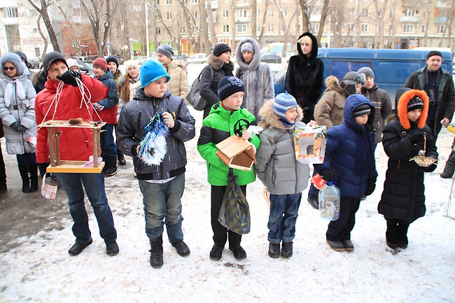 Сегодня в центре Саратова прошла акция среди школьников «Покорми птиц зимой» организованная администрацией Фрунзенского района. Ровно в полдень около сотни учеников младших классов средней школы №18, и физико-технического лицея вышли на аллею по улице Рахова с самодельными кормушками для птиц в руках. Как только дети выстроились, преподаватель начальных классов Людмила Гречко объявила фамилии авторов лучших «домов» для пернатых. Чтобы не замерзнуть, вместо аплодисментов, школьники топали ногами и поднимали вверх руки, приветствуя победителей.