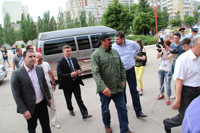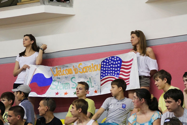 В Саратове состоялось грандиозное по российским меркам событие. На воскресный финал соревнований по борьбе самбо памяти Султана Ахмерова приехал суперзвезда Голливуда, спортсмен, актер, режиссер и продюсер Стивен Сигал. В городе к его прибытию были предприняты беспрецедентные меры безопасности. ФОК «Звездный», где прошла официальная встреча со знаменитостью, с самого утра проверяли кинологи и сотрудники специальных служб.