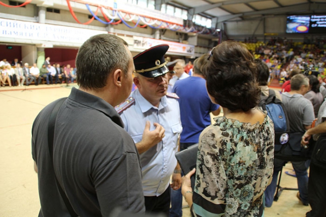 Сразу после закрытой встречи с губернатором области Валерием Радаевым и их совместной поездки на Соколовую гору, американского актера с помпой доставили в физкультурный комплекс. У входа в зал его ожидали глава облдумы Владимир Капкаев, руководитель регионального УФСБ Олег Гайденко и начальник областного ГУ МВД Сергей Аренин. Как только VIP-персоны вышли из бронированного фургона, то они тут же направились внутрь ФОКа, где Сигала встретил рев трибун, и шквал нескончаемых аплодисментов. На протяжении нескольких минут в зале творился настоящий хаос. Зрители и журналисты окружили суперзвезду со всех сторон. Организаторы соревнований и полицейские долгое время пытались успокоить возбужденную публику. Они стали требовать от корреспондентов удалиться на трибуны, но к удивлению журналистов свободных мест там не оказалось. В попытке установить порядок, правоохранители чуть было не переусердствовали, но ситуацию во время исправила глава пресс-службы губернатора Нина Попова. Чиновница объяснилась с командирами-полицейскими, после чего «охота» на прессу со стороны людей в погонах прекратилась.