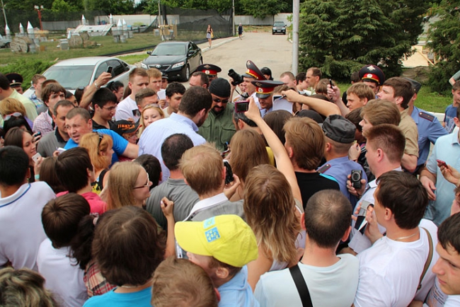 После этого Сигал в сопровождении полиции попытался приблизится к журналистам, чтобы ответить на интересующие СМИ вопросы. Но в этот момент фанаты буквально облепили голливудского актера. В суматохе одному из высокопоставленных полицейских, даже оторвали погон. Тогда легенда кино поспешно покинул «Звездный», но за его пределами ситуация не изменилась. Сигал, отказался давать комментарии, его усадили в правительственное авто и увезли в аэропорт.