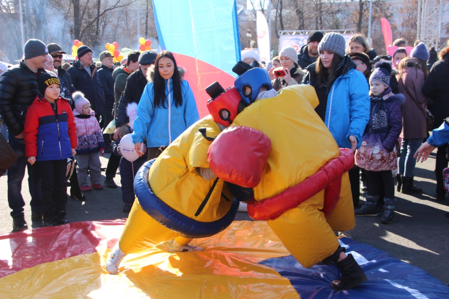 Собравшихся радовали угощениями, конкурсами и аттракционами для самых маленьких. Празднование началось в 12.00. Собравшиеся горожане могли развлечься в интерактивных зонах, которые удивляли обилием конкурсов, игр, выступлений артистов. Между рядов сновали скоморохи, а актеры удивляли ростовыми куклами. Для любителей рукодельных диковинок был представлен широкий выбор народного творчества: от глиняных свистулек, до одежды, выполненной в русском стиле.
