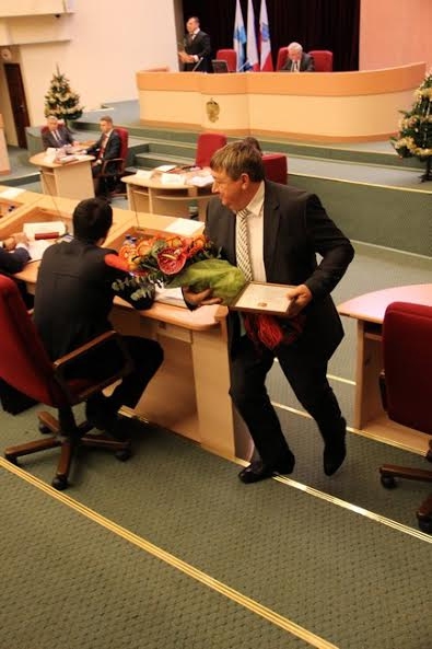 «От себя лично, от коллег-депутатов поздравляю вас с избранием, и хочу пожелать вам успешной работы на благо города», - сказал Буренину Олег Грищенко.